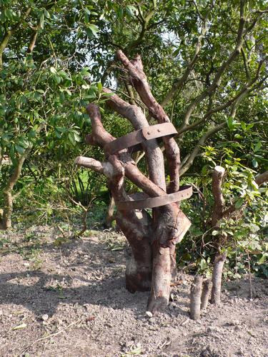 Skulptur aus Eisenreifen und Zedernwurzeln